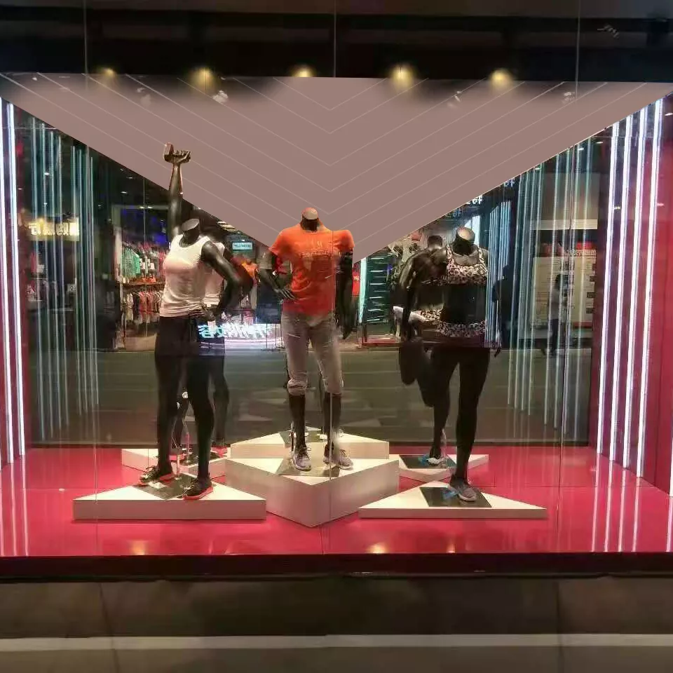 In vensterdisplays is kleur de eerste factor die het oog aantrekt. Ontwerpers gebruiken vaak heldere en contrasterende sportstoffen, zoals helder polyester, sneldrogende gaas of reflecterende materialen. Deze stoffen kunnen niet alleen snel de aandacht trekken van voetgangers op lange afstand of in complexe lichtomstandigheden, maar ze zijn ook vaak gemaakt van wetenschappelijke materialen die de kenmerken van sport weerspiegelen, zoals snel drogende, zweet, compressie, zonbescherming of warmte. De functionaliteit wordt geïmpliceerd door de plooien, texturen of speciale structuren (zoals splitsing en gaas) van de kleding te tonen.
